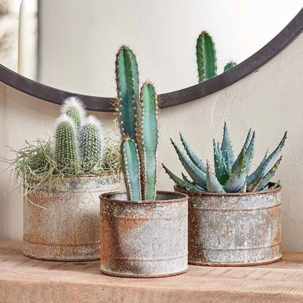 The appealing pared-back tones of these aged zinc Abari plant pots make them the perfect backdrop for your plants. The rustic patina adds an earthy quality that will enhance with age. Size: H 12cm x L 14cm x D 14cm Style of aged zinc in finish, made of iron. Made in India Nkuku was founded on the back of a life-changing adventure for Ali and Alex Cooke when they set off on a year-long round the world trip. From the outset they were inspired and humbled by the talented craftspeople and their beautiful work that they saw. It then encouraged them to do something different, so on their return, they moved to rural Devon and started working with artisans throughout the world, supporting and celebrating their skills by bringing their products to a wider audience.