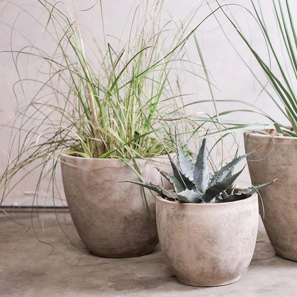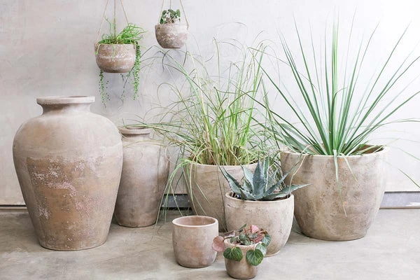 These traditional clay pots make an elegant addition to a garden or terrace. Handmade using a traditional coiling technique in Vietnam, the pots have a rustic pared- back look. Words of Wisdom Please note these pots are frost proof and there is hole in each base for drainage. Care Instructions To care for your planter, we recommend storing away or inside for the winter months and cleaning a minimum of twice yearly using warm soapy water to prevent a build up of dust, dirt or mould. Due to the natural materials and handmade nature, we expect to see variations in the colour of the item. Dimensions: Small 24 x 28cm (dia) Material: Clay Made in Vietnam