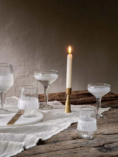 Etched tumbler Made from glass Clear H12cm x D8cm Dishwasher safe: YES Here we have Mila Wine Glass Clear from Nkuku. The Anara small etched tumbler has a striking design, with an outward tapered shape from the base that turns into a straight side. The stylish etched frosting adds an interesting aesthetic with a wonderfully tactile quality. Perfect as water glasses or for soft drinks.