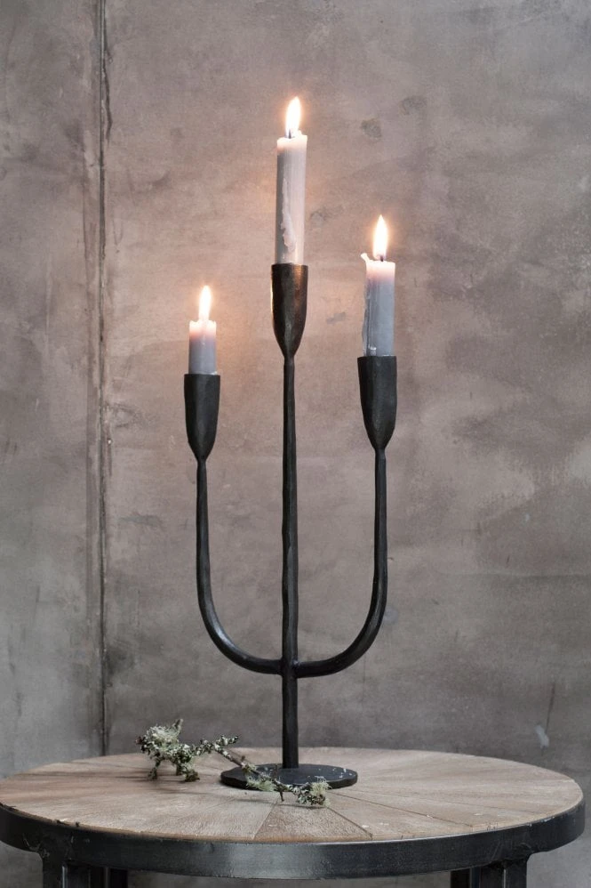 Create a striking table display with Nkuku’s Antique Black Mbata Brass Candelabra. With three arms, this handmade candlestick is crafted from brass and given an antique black finish to suit any decor. Perfect for creating displays at the dining table, the candelabra is also ideal for placing upon a sideboard in the hallway or living room to give the room an ambient glow. Its simple design is ideal for everyday use. Antique black Candelabra Three arms Handmade Product Code: 35227, Antique Black.