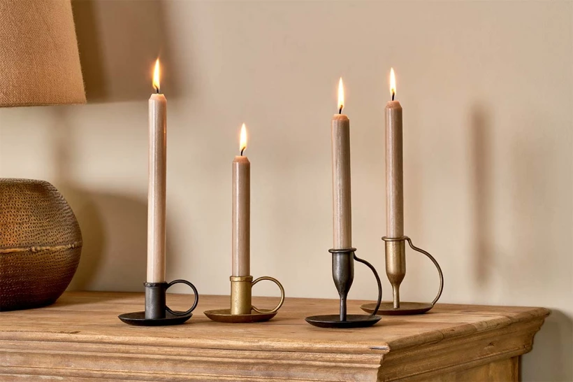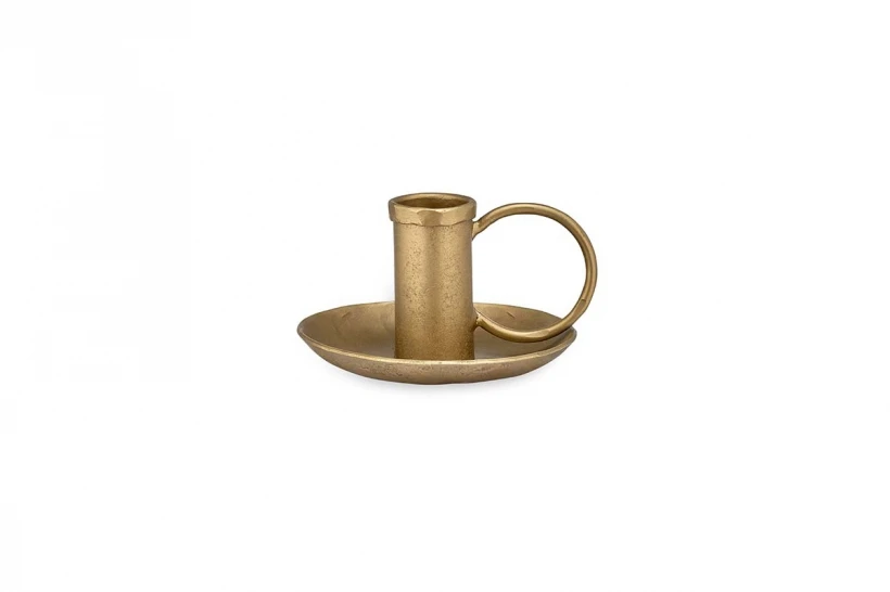 Candlelight creates a magical ambience and this individual iron candlestick brings a sense of nostalgia for a bygone age. The elegant design has a charming handle and dish and the antique brass tones add a warmth that will glow under a flickering flame. The antique brass tone of this candlestick is crafted from iron and is dramatic and striking. Its traditional design brings an age-old charm to a dining table or mantlepiece.