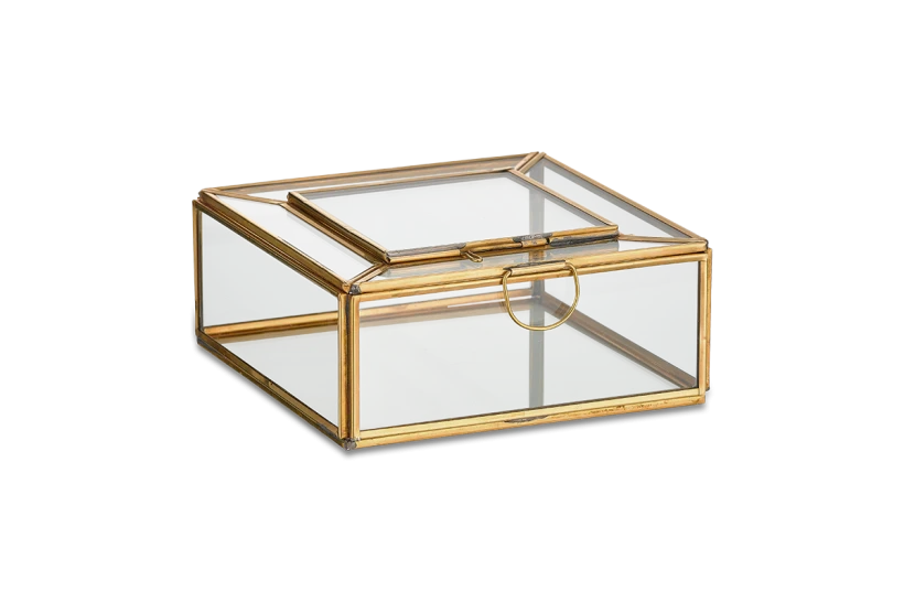 This stylish photo box marries solid brass and simple glass, in an elegant design. The lid of the box includes a square frame, which opens with simple latch mechanism. Personalize it with a treasured memory and tidy away keepsakes and jewellery.