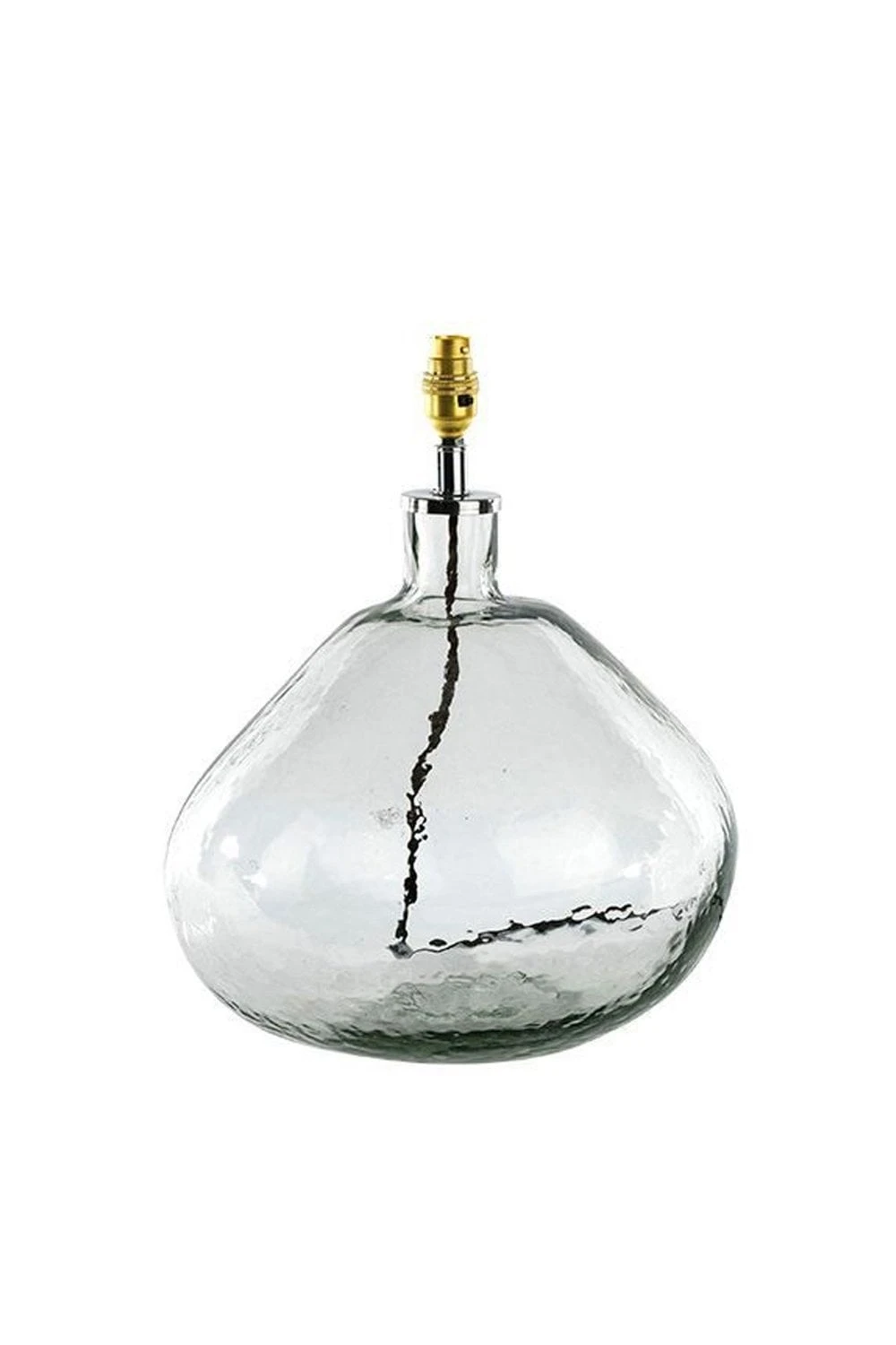 Large Tall 50 x 26cm dia. Large Wide 42 x 31cm B22 Light Fitting. 60 Watts Nkuku’s Baba Large Glass Lamp is perfect for adding some light into the room without having to worry about colour coordinating! This hand-blown glass lamp base is made from recycled glass, resulting in a beautifully imperfect and textured finish that really gives it some character. Placed on a sideboard in the hallway or lounge, the clear glass makes it perfect for pairing with any colour and design of shade, but we recommend the Nkuku Dia Natural Jute Lampshades for a neutral look that will suit every room. Recycled glass Handmade in Rajasthan, India Imperfect textured finish Lamp base only Product Code: 36161