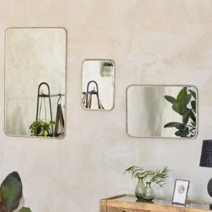 The elegant, ‘antique style’ brass frame of our NKUKU Balia mirrors adds a subtle tone of sophistication. The feathered edging of the brass mirror softly meets the rolled brass edge of the frame. This simple NKUKU brass mirror is a graceful addition to any interior. Please note that the Balia Mirrors can be hung landscape or portrait. 40.5 x 30 x 0.5cm A WORD FROM NKUKU “The materials we work with shape our collections and play a key part in our look and values. We choose to work with natural, recycled and reclaimed materials through sustainable methods of production. Whether it’s the makers’ distinctive style, the character of the piece or the inspiration behind its origins, there’s always more to tell than meets the eye.”
