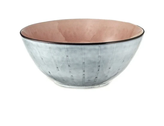 This grey and dusky Pink serving bowl is made using a reactive glaze, this means no two items are the same. Created by talented artisans in China. The country has a rich heritage of arts and crafts, but sadly it is now more renowned for mass production and many of its traditional skills have been forgotten or overlooked. We work together with our suppliers to protect these skills. Colour: Grey & Dusky Pink Material: Stoneware Size: 12cm x 24 cm Dia Capacity: 2300ml Dishwasher Safe: Yes Microwave Safe: Yes Oven Safe: No The soft grey and dusky pink of this artisan-made ceramic serving bowl strikes an elegant balance between style and fun. Use together with our mugs and plates for a harmonious look or mix colours for a more playful table. The bowls and mugs have a tactile hand-scoring design on the exterior.