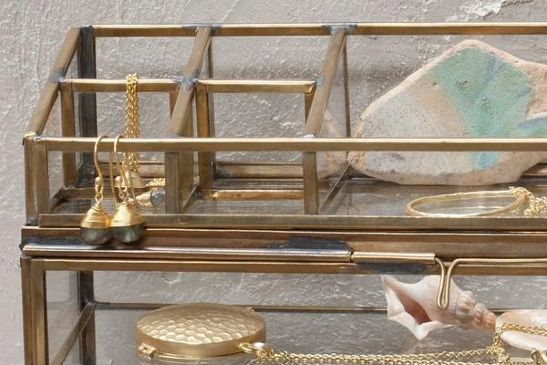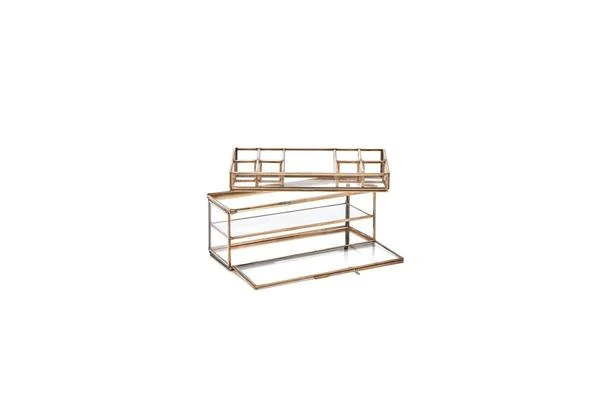 Our Bequai open jewellery box is made up of stylish compartments that fit neatly together in an elegant box. The well-designed segments are suited to holding all types of jewellery. This brass jewellery box is made up of a series of compartments suitable for holding jewellery, cufflinks and watches as well as other small treasures.