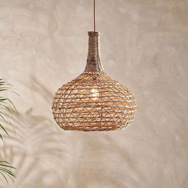 These striking, Beru lampshades have been skilfully handwoven from rattan. Ancient basket making skills have been utilised to create these attractive pendant light shades, perfect for creating a sense of calm with the subtle use of natural materials. We love the curvaceous shape of these beautiful rattan pendant lights. The pattern created by the traditional basket weaving methods creates an attractive, organic look that lends itself perfectly to a bohemian inspired interior. Beru Rattan Lampshade. Handwoven. Made from rattan. Available in two sizes – Sold separately. Small shade dimensions approx. 47cm (H) x 39cm (Diameter). Large shade dimensions approx. 66cm (H) x 51cm (Diameter). Please note lighting does not include bulbs.