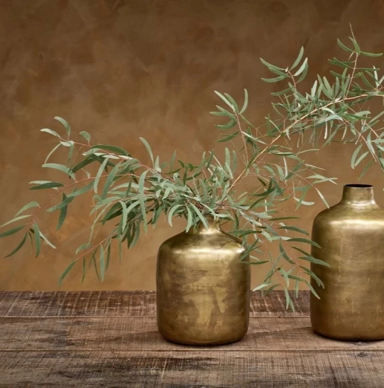 The Boro iron straight vase has a smooth simple design and short neck, with the antique brass look of the vase giving it a sense of modern elegance. The Boro vase is perfect for adding interest to a cabinet or set of shelves; try styling it with other vases from the Boro collection or filled with dried stems.