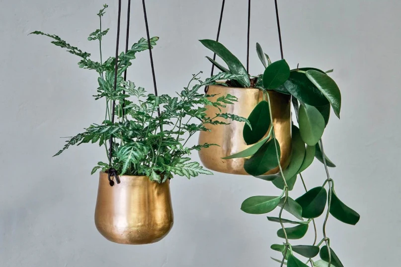The golden hues of brass of the Atsu planters really extenuate the smooth contours of this elegant hanging pot. The brass is a striking back drop against green foliage making an eye -catching combination. Each planter is hung with leather ties, making it faithfully sturdy. This pot would look fantastic hanging in a window, perhaps with contrasting curtains, or even on wall- and ceiling-hooks.