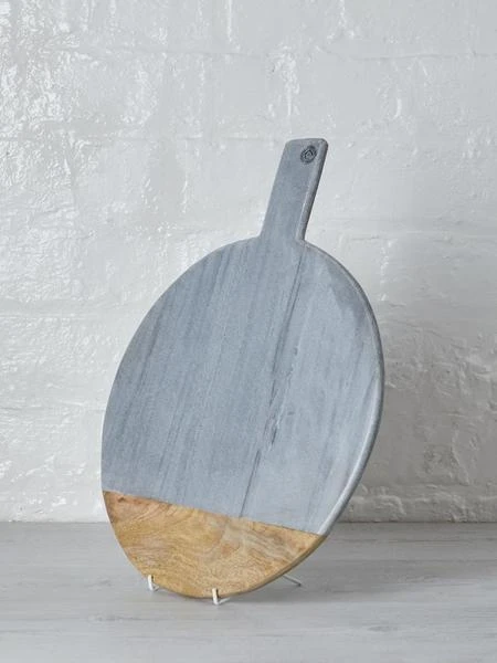 The smooth texture of these solid grey marble and mango wood Bwari chopping boards make them a tactile and useful board. They transfer from the kitchen to the table with ease and provide a great way to serve sharing foods and nibbles. To care for your marble and wood boards please hand wash only. Wipe clean with a damp cloth and do not soak. Please do not use harsh chemicals or abrasive cleaners.