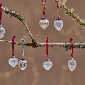 These exquisite Dew Drop Baubles from Nkuku look gorgeous on and off the tree. Made from glass they catch and reflect the light creating a soft twinkling effect. The baubles are sold in bags of 12.