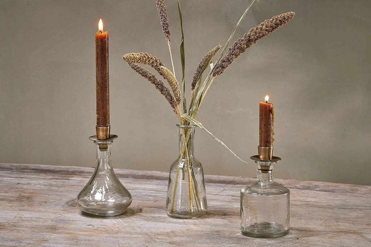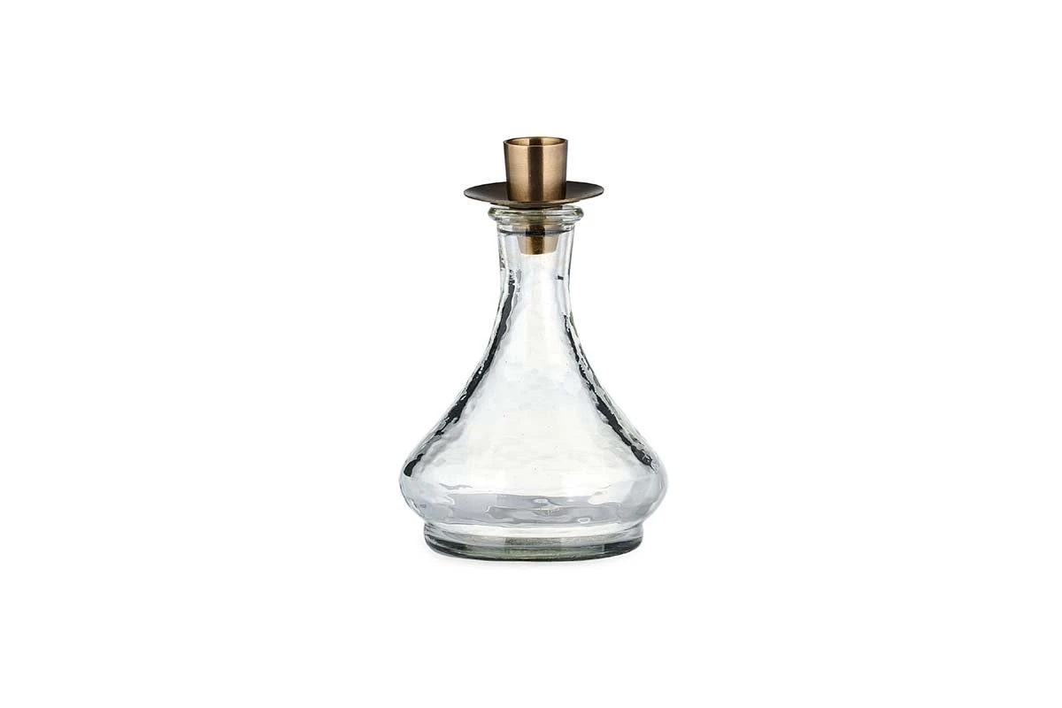 Elegant and charming this recycled glass Sirsa candlestick has a pretty tapered shape and clear hammered glass finish. The holder is removable allowing you to also use it as an attractive stem vase. Style with a standard dining candle and blend a variety of heights and shapes for an attractive display.