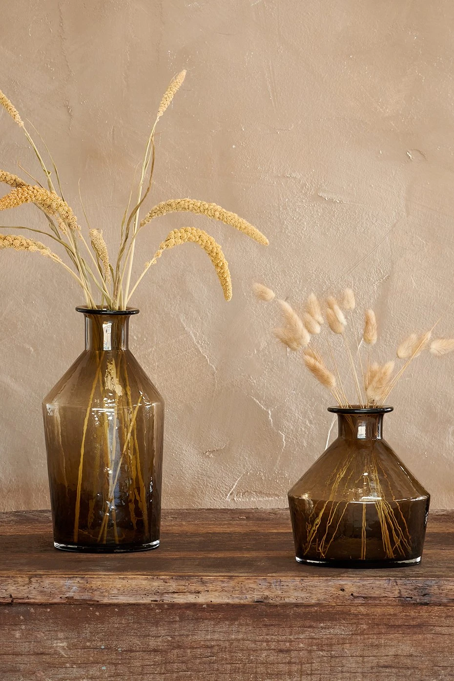 Crafted from recycled glass and presented in a rich brown colouring that changes with light, the Zaani vases come in three different asymmetrical shapes that bring a unique sense of life to your home. The process of sourcing the recycled glass requires washing and melting the glass which is then hand blown and crafted using traditional tools which give the glass its hammered appearance. Presented with the small and large vases, curate an attractive display filled with fresh or dried flower bouquets.