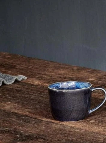 The tactile, smooth glaze of our Dana tall mug is a pleasure to hold. The indigo- sky blue glaze has an intense tone that is enhanced with organic contours of the mug. The reactive glaze ensures each one is unique. Words of Wisdom These collections are made using a reactive glaze, this means no two items are the same. Created by talented artisans in China. The country has a rich heritage of arts and crafts, but sadly it is now more renowned for mass production and many of its traditional skills have been forgotten or overlooked. We work together with our suppliers to protect these skills. Dishwasher & Microwave Safe 6.5cm x 8cm x 8cm