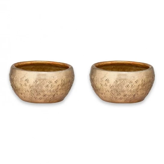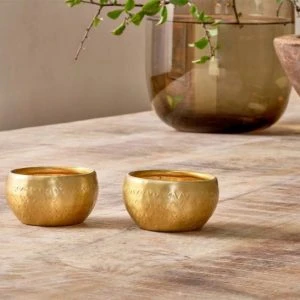These characterful Darani tealights are handcrafted from aluminium. The striking etched pattern is skilfully applied to their small bowl shape using simple hand tools. The aged brass finish enhances the look of the tea light, giving it a pared back yet elegant feel. Scatter a few along a table or sideboard to create a warm glow.