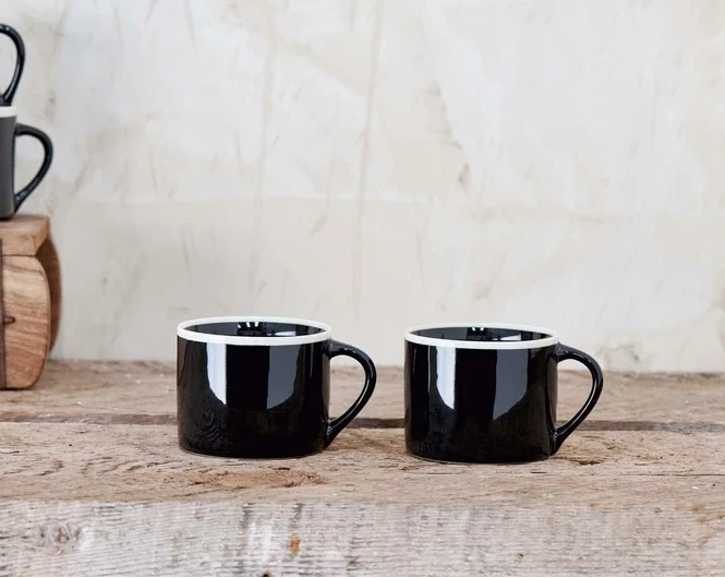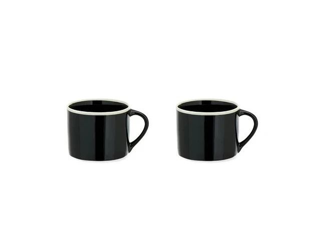 Colour: Black Material: White Clay Size: 6.5cm x 8 cm Dia Weight: 196g Dishwasher Safe: Yes Microwave Safe: Yes Oven Safe: Yes Set Purchase: Set of Two