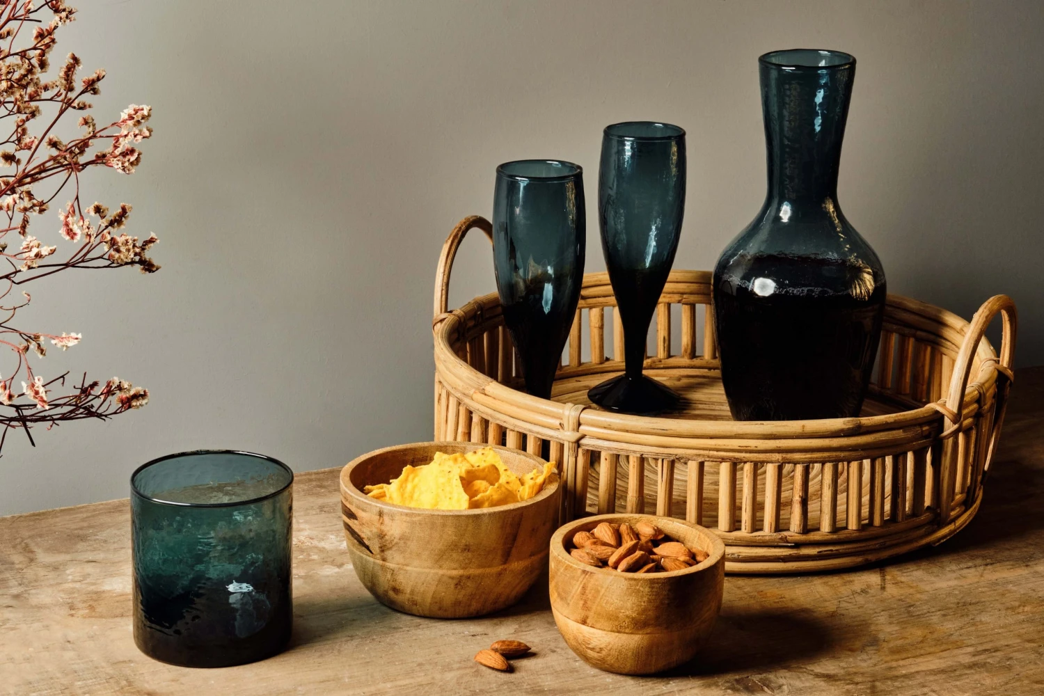 Each glass is made using recycled glass. Firstly, the waste glass is collected and washed to remove any impurities; it’s then crushed and melted down before being hand blown or placed in moulds to create beautiful new products.