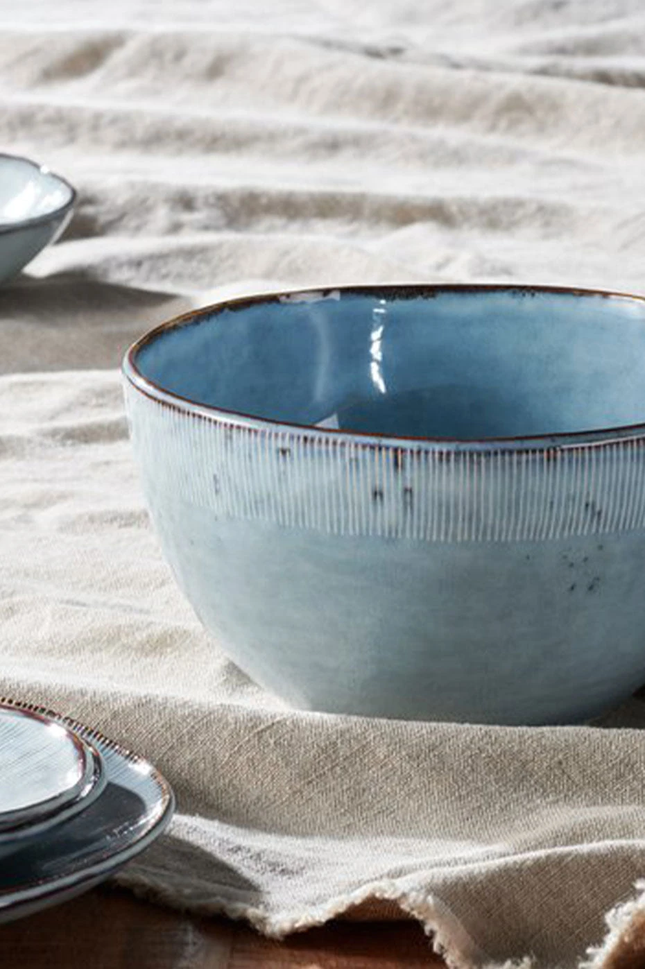- Handcrafted with care, the Nkuku Dusty Blue Malia Serving Bowl is made from high-quality ceramic, ensuring durability and a timeless aesthetic for your dining table.
