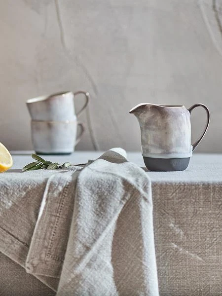 A natural colour palette of warm terracotta and an earthy off-white glaze combine in the organic shape of this practical jug. These collections are created by talented artisans in China. The country has a rich heritage of arts and crafts, but sadly it is now more renowned for mass production and many of its traditional skills have been forgotten or overlooked. We work together with our suppliers to protect these skills.Dishwasher safe. Mircrowave proof.