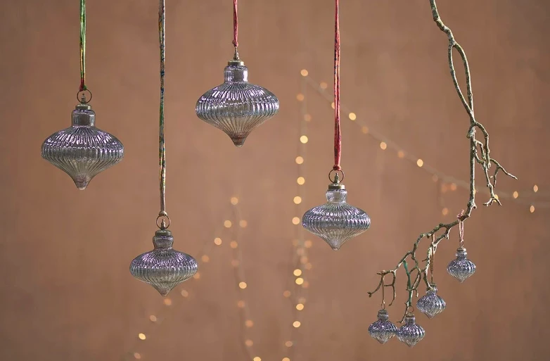 The grey luster tones of these attractive Eliza giant baubles, sit beautifully on its elegant lantern shape design. Style different sizes together at varying heights for an striking focal point.