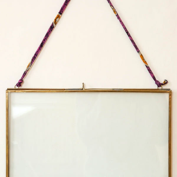 Kiko frames are one of Nkuku’s most iconic pieces. The glass front and back make them great for photographs, or other precious keepsakes like postcards, concert tickets and drawings. They look great grouped together in a range of sizes and orientations. Each one is strung with a recycled sari tie. The metal is skilfully soldered around the glass with traditional tools; this handmade process means that there are weld marks on the joins of each piece, a feature that we love as it tells the story of how the product is made. Brass, Glass 36 x 29 x 1cm