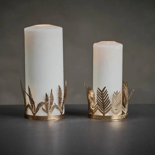 These Feather Candle Holders have an ethereal quality. The delicate feathered plumes are cut by hand; the warm brass tones only add to the magical feel. Style with a church candle or T light. 10 x 10.5cm (dia)