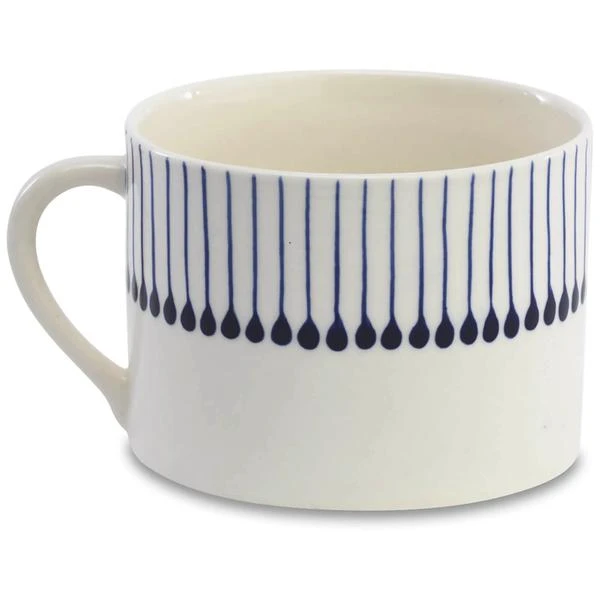 This striking Iba mug is handmade from white clay. The exquisite indigo matchstick design is hand painted by skilled artisans in Vietnam. We love the size and shape of this elegant mug. These ceramics are handmade in Vietnam by skilled artisans, using a wealth of techniques some that are thousands of years old. The collections are painted and shaped by hand incorporating indigenous and contemporary influences. 7 x 10cm (dia) Made from White Clay