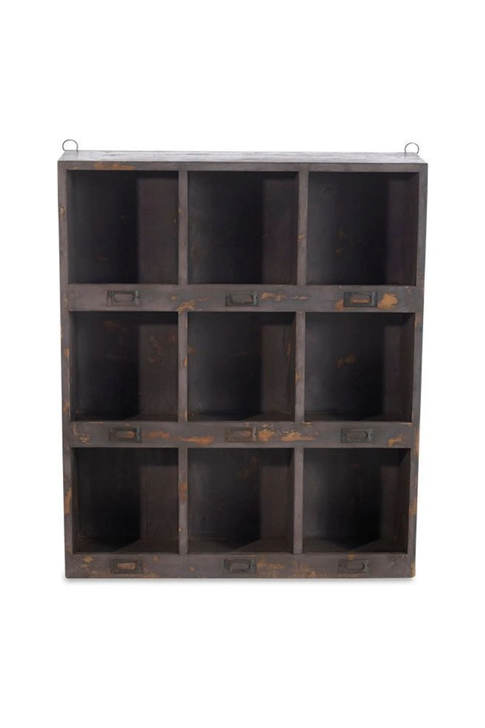 Small: 29 x 70 x 21cm Medium: 83 x 70 x 20cm Practical yet incredibly stylish, the Nkuku Imani Wooden Locker Shelf is a clever storage solution for your home. With separate compartments to hold all kinds of items, each compartment features a distressed metal name holder to keep you organised, whilst the distressed dark green finish of the wood will add subtle colour to the room. These handmade shelves are perfect for everywhere from the hallway to the kitchen. Subtle distressed green finish Individual compartments with metal name holders Handmade Product Code: 35303