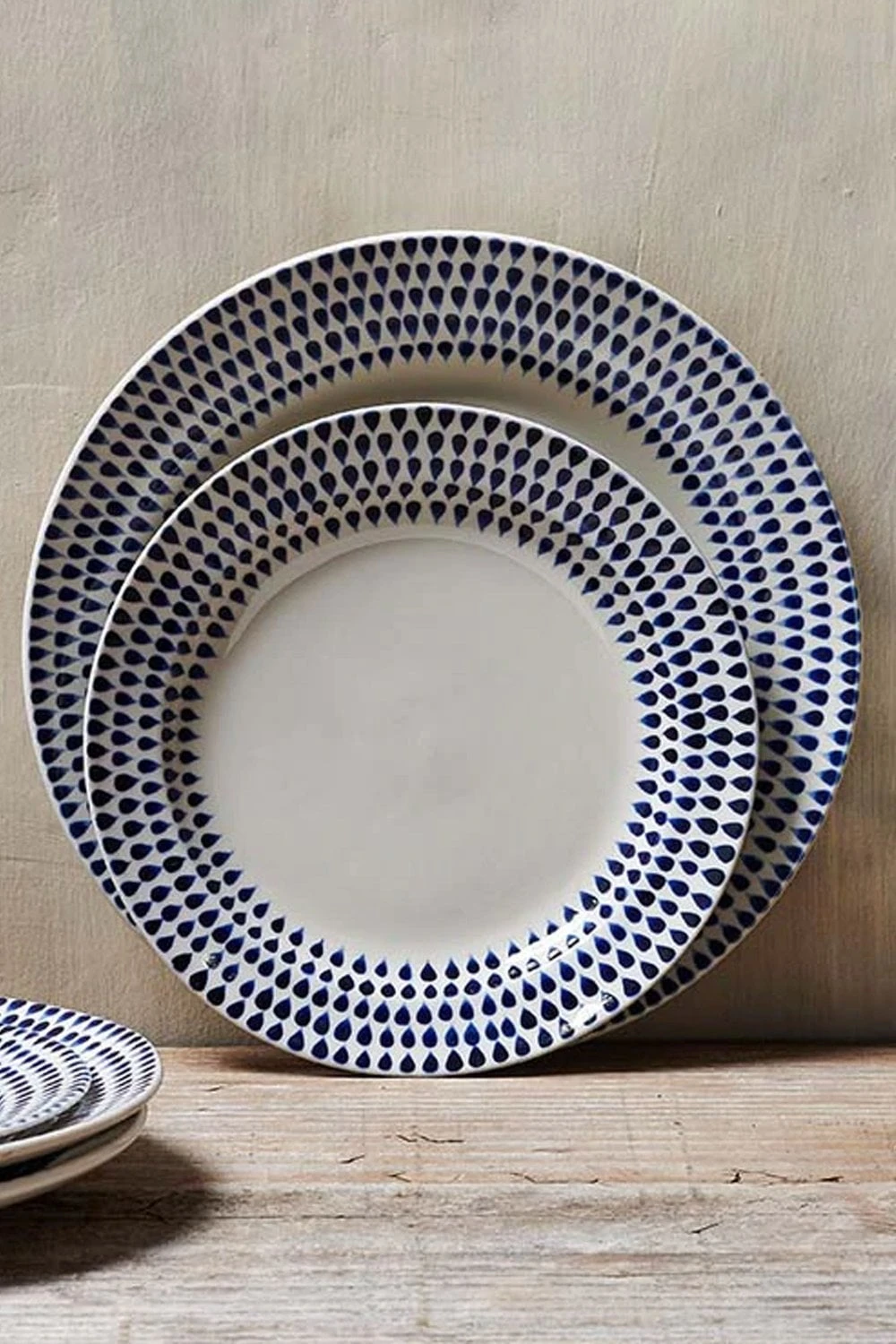 Nkuku Kitchen and dining Indigo drop Cream and indigo Side Plate Hand Painted Indigo Drop Pattern Glazed Dishwasher, microwave and oven safe Handmade in Vietnam 2 x 22.5 x 22.5cm 43717