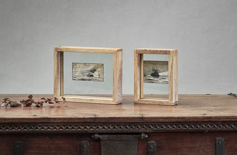 These stylish Indu standing frames have a chunky wood design, made with sustainable mango wood. The combination of natural wood and see-through glass makes this a timeless classic that really showcases the image within.
