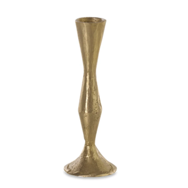 Elegant hand forged Jahi Candlesticks from Nkuku have been handmade by artisans in India. Made from brass they are weighty with a textured hammered surface. They make a striking addition to the table or on a mantelpiece.
