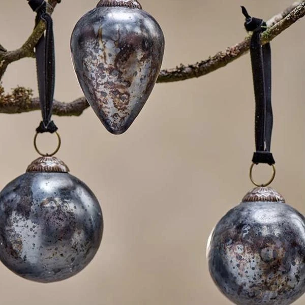 The sophisticated smokey hues of the Jalshara baubles give these stunning decorations a timeless aged-elegance. The set has a mix of traditional baubles and dew drop shapes that display perfectly together. Each bauble is made from recycled glass and is strung with a black velvet tie adding to the oppulence of these delightful decorations. Set of x4 Nkuku use recycled glass to make these collections. Firstly, the waste glass is collected and washed to remove any impurities; it is then crushed and melted down before being hand blown or placed in moulds to create beautiful new products. Dimensions: 9cm x 6cm x 6cm Colour: Antique Smoke Made in India from recycled glass. Nkuku was founded on the back of a life-changing adventure for Ali and Alex Cooke when they set off on a year-long round the world trip. From the outset they were inspired and humbled by the talented craftspeople and their beautiful work that they saw. It then encouraged them to do something different, so on their return, they moved to rural Devon and started working with artisans throughout the world, supporting and celebrating their skills by bringing their products to a wider audience.