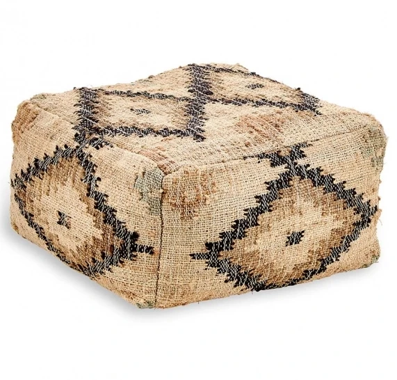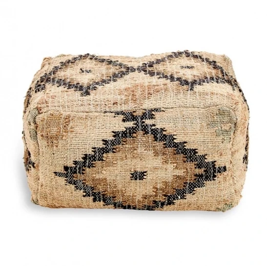 The subtle, geometric pattern on the small Kesu kilim pouf appealingly blends a mix of colour tones. The washed finish is understated and homely. Woven from a hemp and cotton mix, the Kesu has a soft cotton feel and is perfect for the outdoor gatherings and alfresco summer evenings. We strongly recommend that the Kesu is not left outside as it will deteriorate if exposed to the elements.