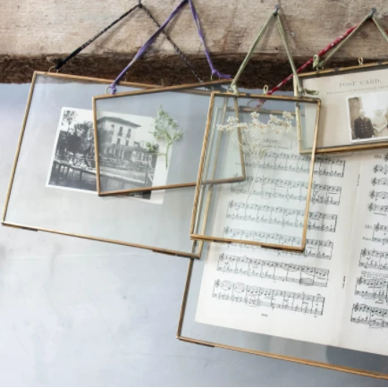 These Kiko frames by Nkuku are one of their most iconic pieces. The glass front and back make them great for photographs, or other precious keepsakes like postcards, concert tickets and drawings. They look great grouped together in a range of sizes and orientations. Each one is strung with a recycled sari tie. The metal is skilfully soldered around the glass with traditional tools; this handmade process means that there are weld marks on the joins of each piece, a feature that tells the story of how the product is made. Two sizes and portrait or landscape to choose from (select from the drop down menu): 10cm x 16cm x 1cm (4 x 6″) 13cm x 18cm x 1cm (5 x 7″) Made in India Nkuku was founded on the back of a life-changing adventure for Ali and Alex Cooke when they set off on a year-long round the world trip. From the outset they were inspired and humbled by the talented craftspeople and their beautiful work, that we met on the journey. It then encouraged them to do something different, so on their return, they moved to rural Devon and started working with artisans throughout the world, supporting and celebrating their skills by bringing their products to a wider audience.