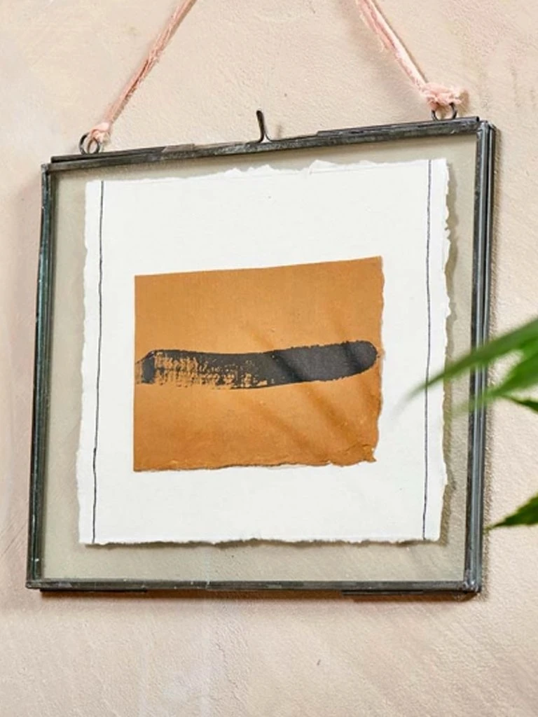 These glassed front and back frames make them not only great for photographs but also a creative way to display other memorable keepsakes, like postcards and drawings. They look great grouped together in a range of sizes and orientations. Each one is strung with a recycled sari tie, made from recycled fabric. Landscape 29 x 36cm Zinc frame Recycled sari tie, colours will vary Available in different sizes