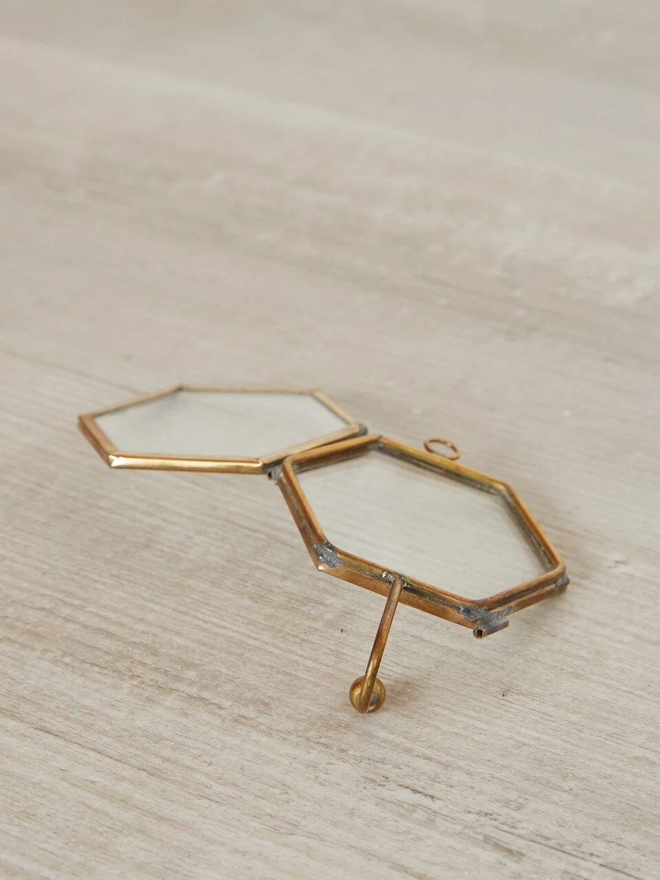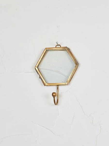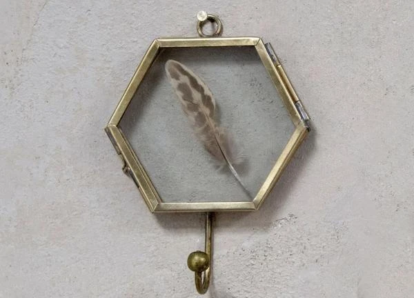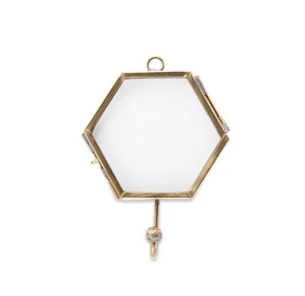 These elegant Kiko hooks combine antique brass and glass in three angular shapes. The see through frame is ideal for holding a photo making it easy to identify whose hook is whose or decorate them with flowers and other artwork for our own unique display. Available in hexagon, square and triangle.
