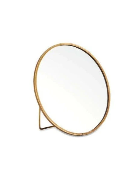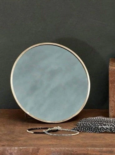 Simple and elegant, these charming Kiko standing mirrors are perfect for a dressing table or sideboard decoration. The circular brass frame has been hand crafted around the mirrored glass in this timeless design. Words of Wisdom The metal is skilfully soldered around the glass with traditional tools; this handmade process means that there are weld marks on the joins of each piece, a feature that we love as it tells the story of how the product is made. 6.5 x 15cm (dia)