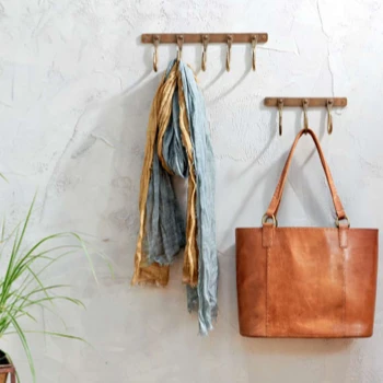 These Kuna Iron Hooks in an antique brass finish from Nkuku are simple, practical and the perfect size for use on the wall or behind a door. The 3 hooks themselves are a good size for all manner of purposes whether that be to hang clothes or small storage items. Also available in a larger 5 hook version. screws and raw plugs supplied with hooks.