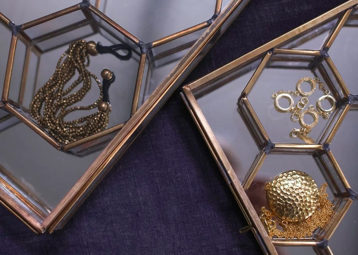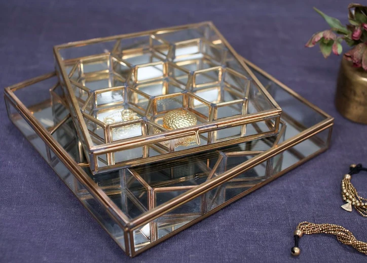 Our Bequai Honeycomb Box is beautifully finished in hand soldered brass with a mirror base. This gorgeous piece also has an attractive and practical honeycomb design; ideal for storing jewellery, cufflinks and other small items.