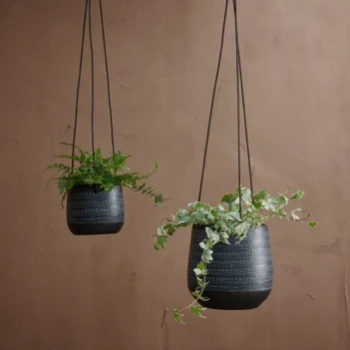 Nkuku Large Black Mahika Hanging Planter – Modern Indoor/Outdoor Plant Holder