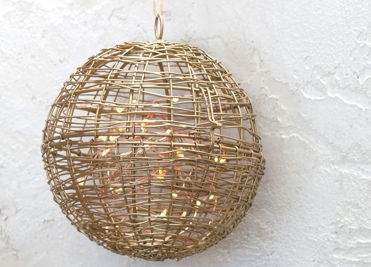 These large opening Ngoni baubles are sculpted by hand from brass wire. Each one has a simple fastening allowing you to place something inside, chocolates for the tree or small gifts. Re- use them year after year.