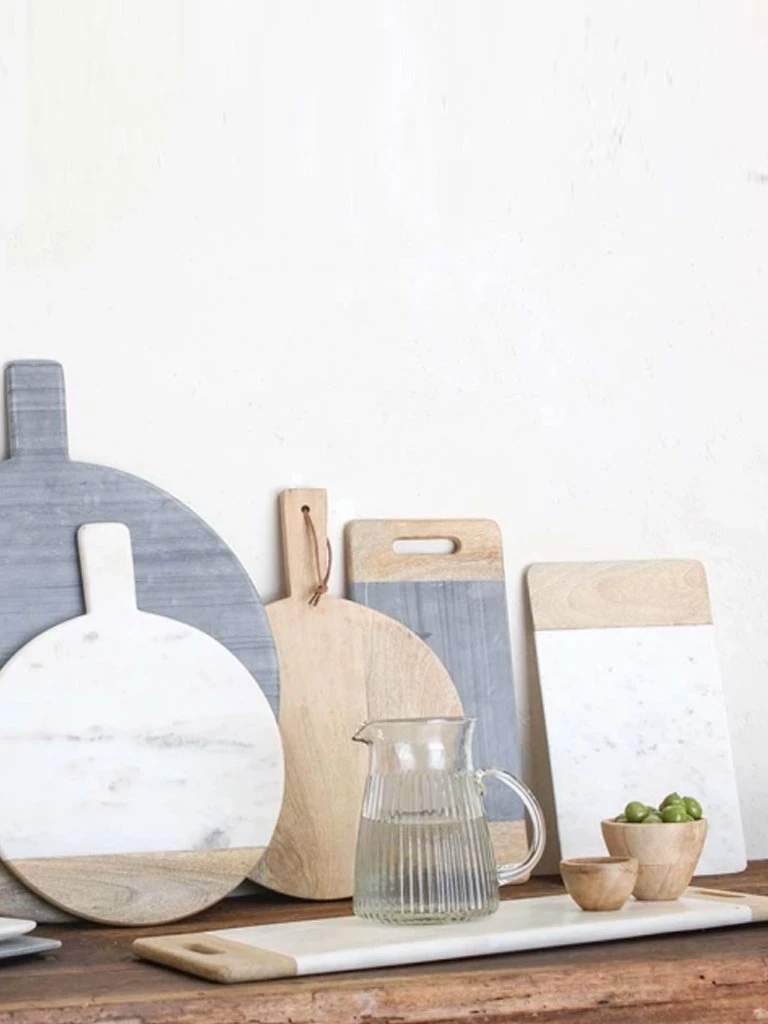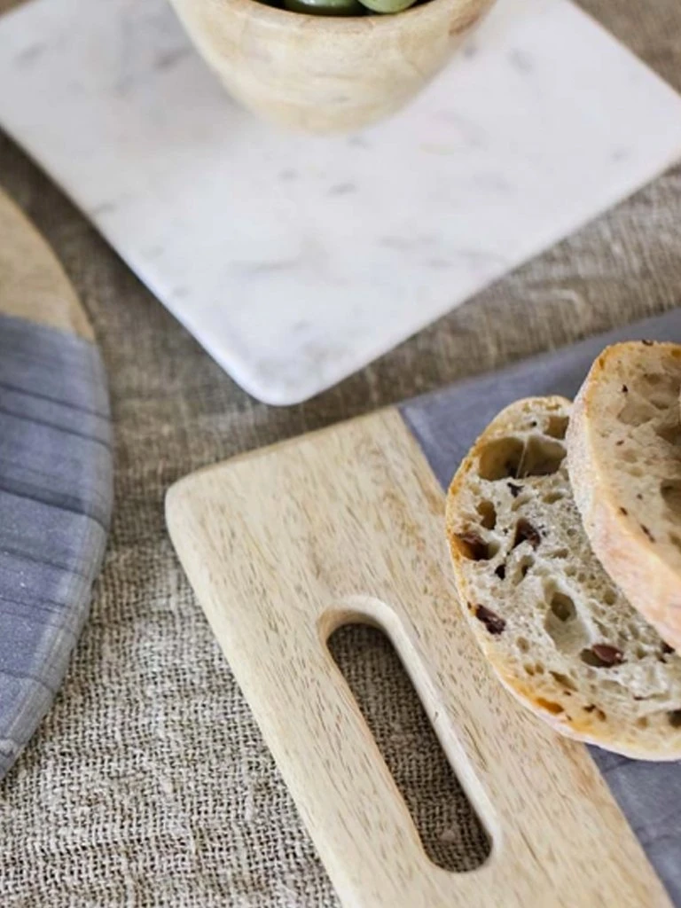 The Bwari Long Marble Board from Nkuku is made from smooth white marble, complemented with a natural mango wood segment. The piece is skilfully handmade using traditional tools. Designed for the kitchen and the table, they are ideal for serving anti-pasti and sharing foods and as chopping boards. 2 x 35.5 x 22cm 2.9kg Sustainable mango wood Natural marble – finishes will vary