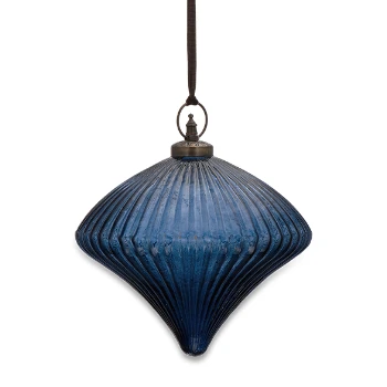 Striking and sophisticated, these giant Bouka baubles have an attractive indigo hue that is enhanced with a ribbed detail and elegant lantern shape. Each one is strung with a brown velvet tie.