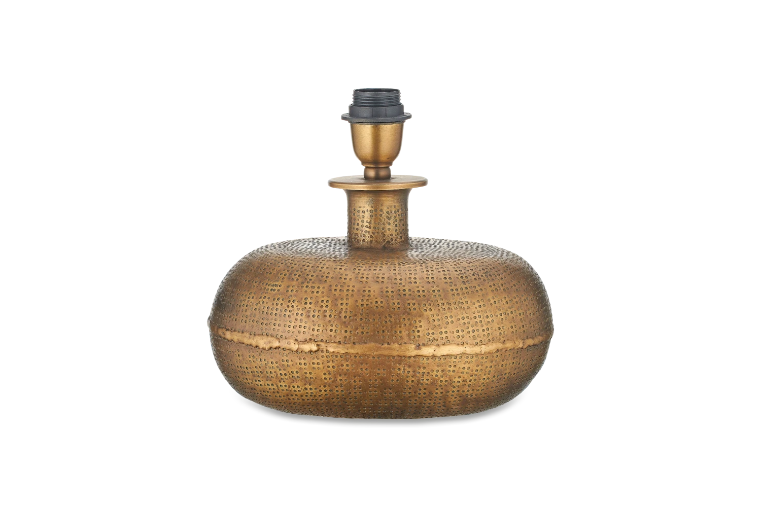 This small Lumbu lamp from Nkuku has an interesting antique appearance derived from the honest, artisan techniques used to create it. The antique brass finish enhances the tactile pattern in an understated and stylish manner. Each lamp comes with a brown fabric cord.