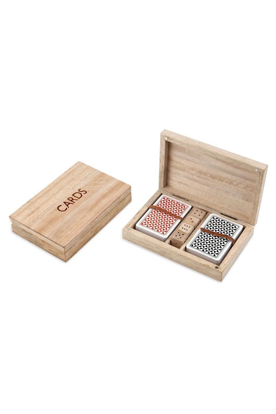 A great gift for you or the ones you love, this card and dice set comes in a sustainable mango wood presentation box and features two decks of cards and 4 dice. Detail is in the finery, with small leather pull tabs allowing you to easily remove your cards from the box without damaging them, and the embossed ‘Cards’ on the top of the box gives them a more authentic and original feel.