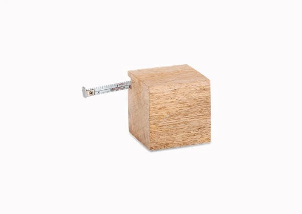 This beautiful mango wood tape measure, is an ideal gift due to its practicality small, light and with a contemporary and special design. 4.5 cm.