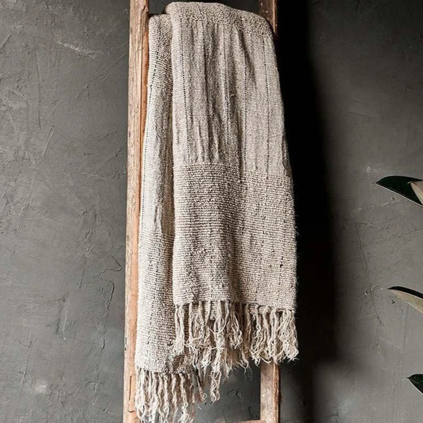 The subtle texture of this tactile cotton and linen Mayla throw is enhanced by the neutral tones and faint charcoal stitching work. Layer across the back of a sofa or armchair. Style with the beautiful Mayla cushions from the same collection. Measures 140 x 200cm