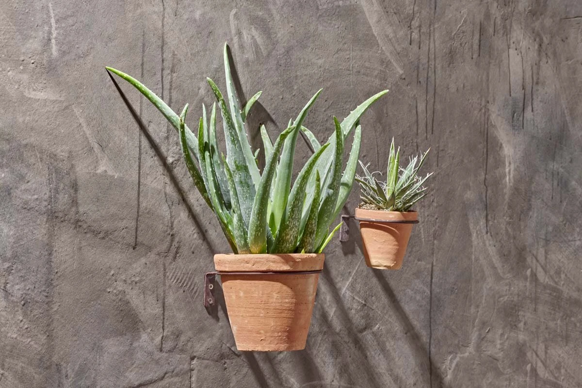 These Jara wall-hung planters from Nkuku have an attractive rusty metal wall attachment with a classic terracotta pot. Ideal for designing your own planting wall, inside or out, on their own or grouped together, just fill with your favourite plants and enjoy.