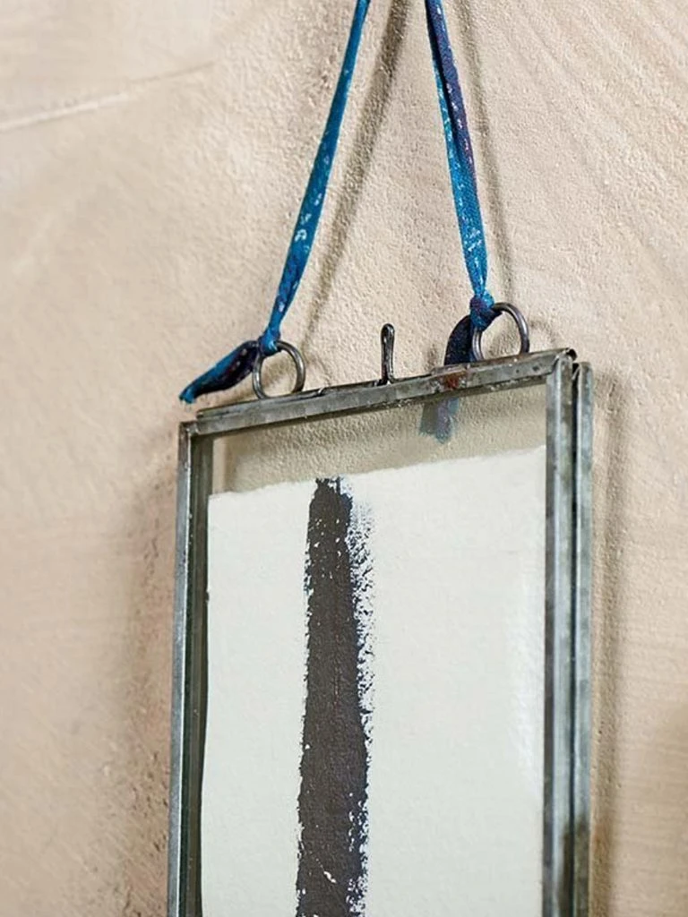 These glassed front and back frames make them not only great for photographs but also a creative way to display other memorable keepsakes, like postcards and drawings. They look great grouped together in a range of sizes and orientations. Each one is strung with a recycled sari tie, made from recycled fabric. Portrait 7 x 5″ (18 x 13cm) Zinc frame Recycled sari tie, colours will vary Available in different sizes