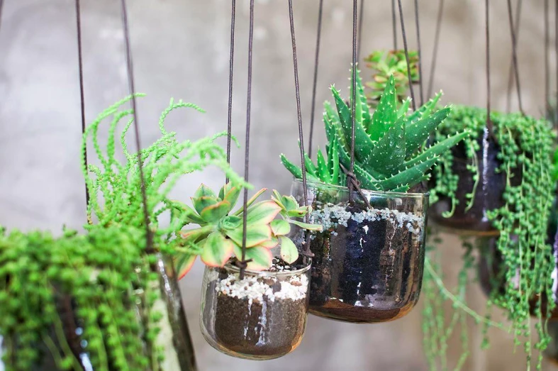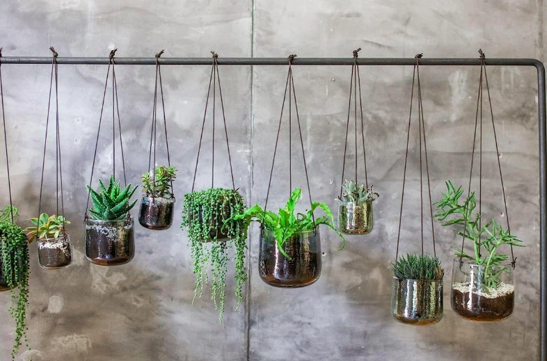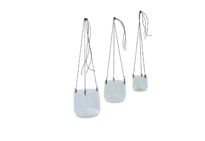 This elegant Viri hanging planter has an eye-catching finish. The organic shape is made from recycled glass. It is perfect for succulents, cacti, herbs and other indoor plants. They come with an adjustable dark leather tie.